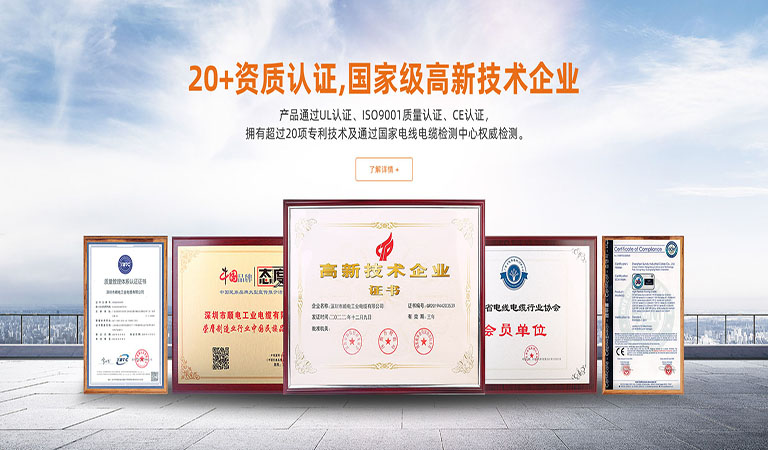 資質認證齊全,國家高新技術企業,15項專利技術產品通過UL認證、ISO9001質量認證、CE認證,擁有超過十五項專利技術及通過國家電線電纜檢測中心權威檢測。
